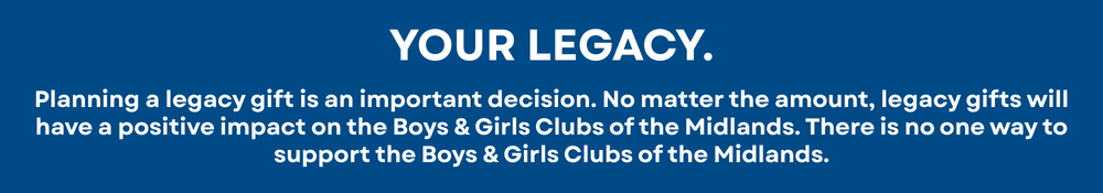 By including Boys & Girls Clubs of the Midlands in your legacy gift, you help sustain the critical out-of-school programs that young people and families count on every day. Your contribution helps young people achieve academic success, develop leadership skills, prioritize their health and well-being, and prepare for future career and life opportunities.